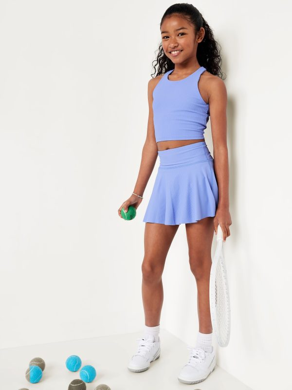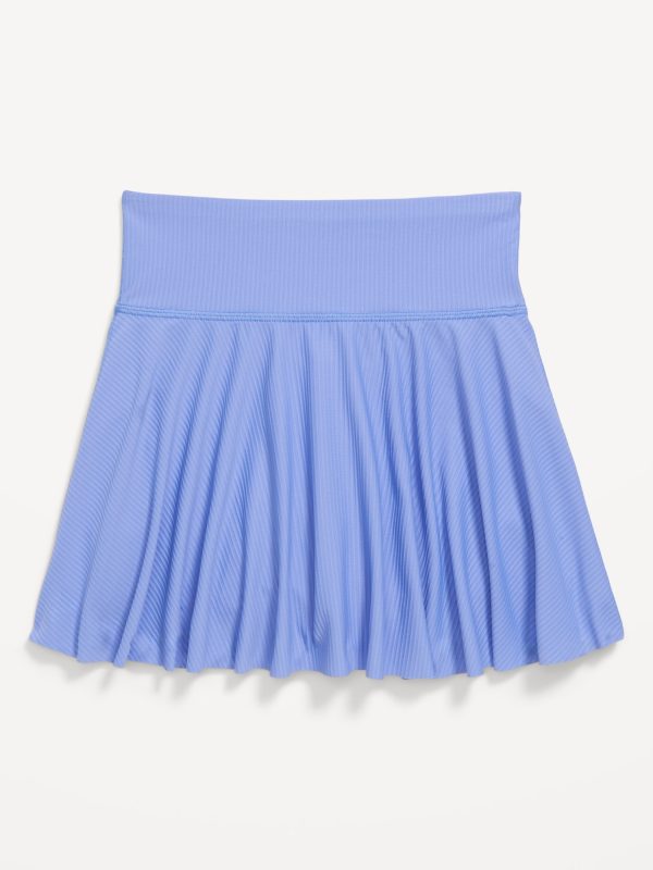 High-Waisted PowerSoft Skort for Girls: high-rise, elasticized waistband, reflective logo in back, mini-length skirt, built-in biker shorts, side pocket on shorts, easy pull-on style, #831549