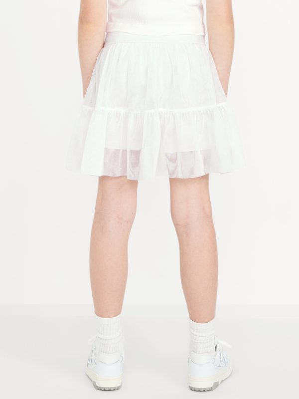 High-Waisted PowerSoft Tutu Skort for Girls: built-in biker shorts, high-rise, elasticized waistband, reflective logo at back, mini-length tutu skirt, lightweight tulle mesh layer, easy pull-on style, #762164