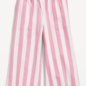 High-Waisted Pucker Wide-Leg Pants for Girls: ruffle elastic waistband, on-seam pockets, curved leg, wide contrasting stripes, #767120