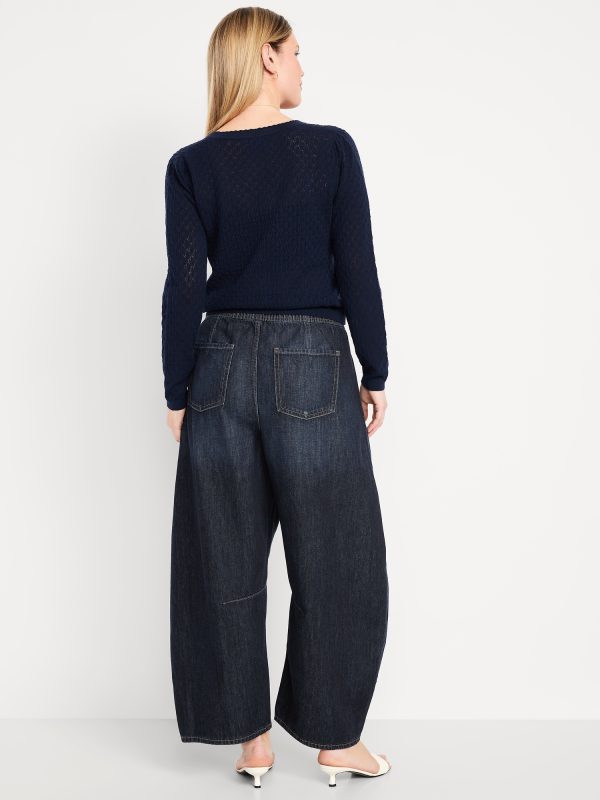 High-Waisted Pull-On Barrel Jeans: A curved, tapered leg and proportion play from hip to hem.elastic-drawstring pull-on waist, diagonal hip pockets, back patch pockets, barrel leg, #789111