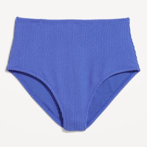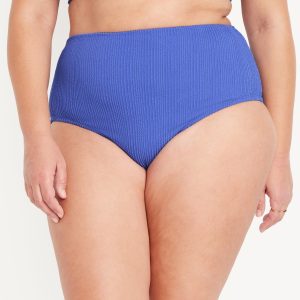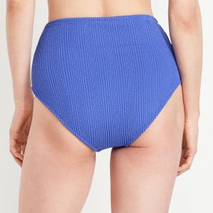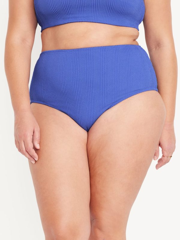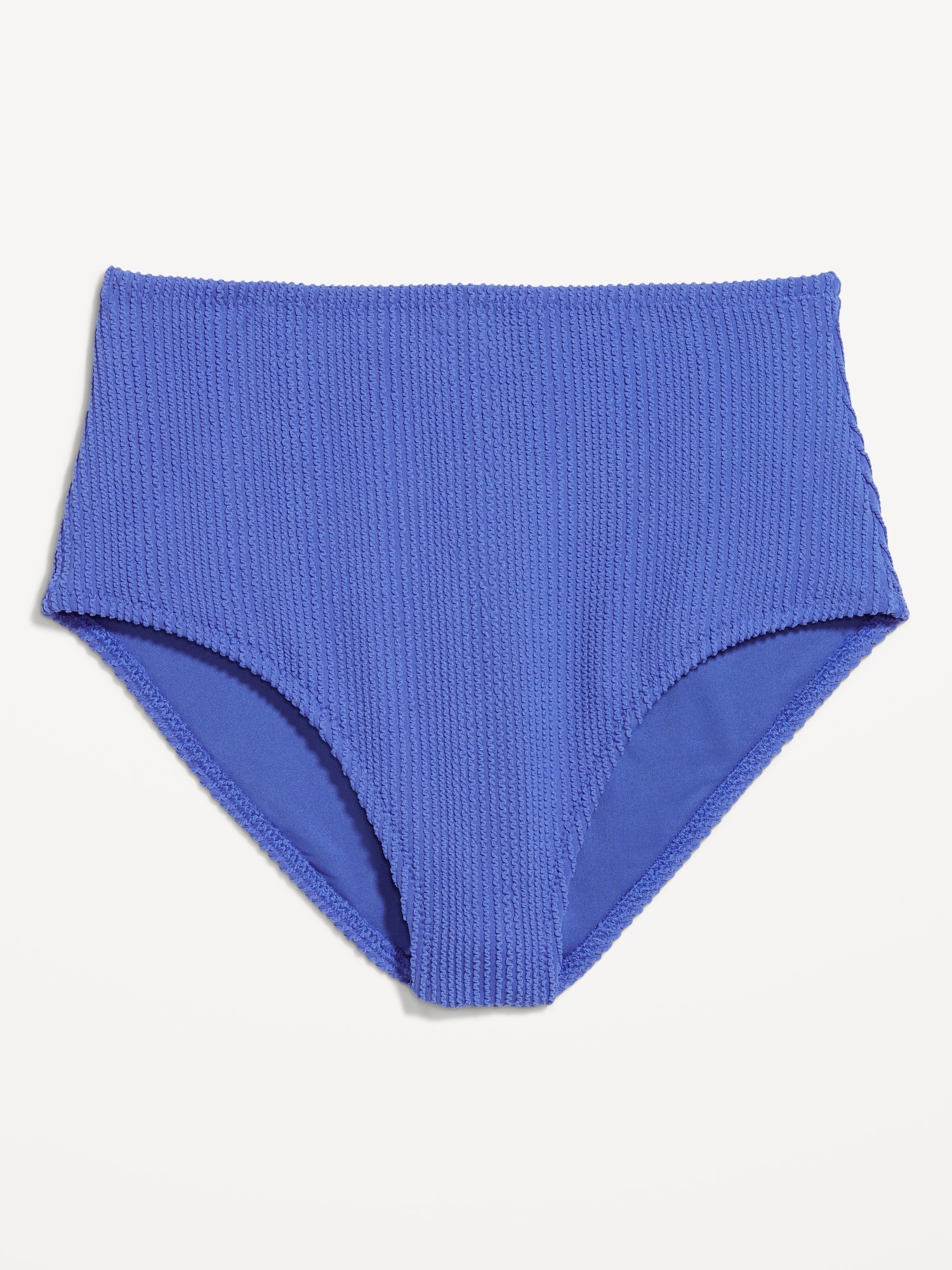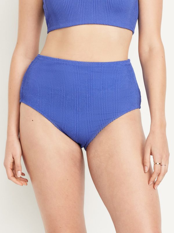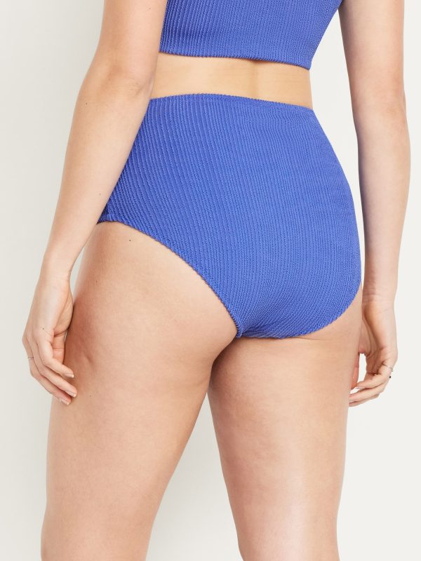 High-Waisted Ribbed Bikini Swim Bottoms: elasticized waist, elasticized leg openings, prints vary, #660456