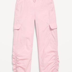 High-Waisted Side Ruched Cargo Parachute Joggers for Girls