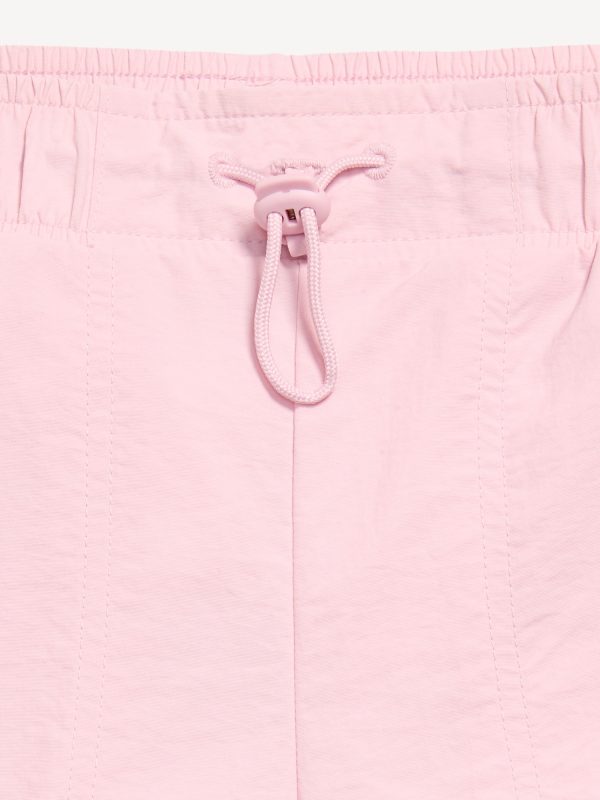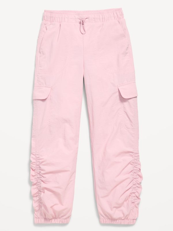 High-Waisted Side Ruched Cargo Parachute Joggers for Girls: elasticized waistband, functional drawcord, diagonal on-seam pockets, flap cargo pockets at each leg, ruching along each leg, cinched leg cuffs, #804775