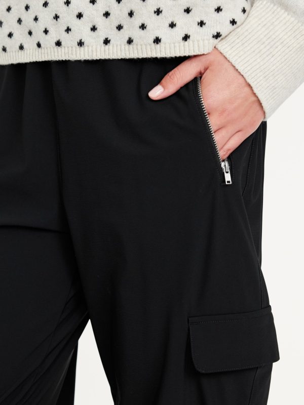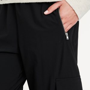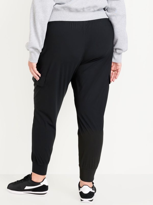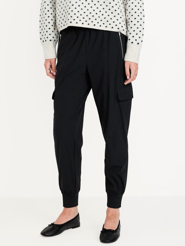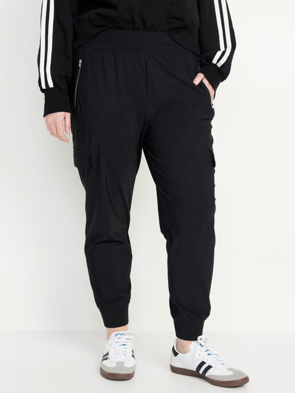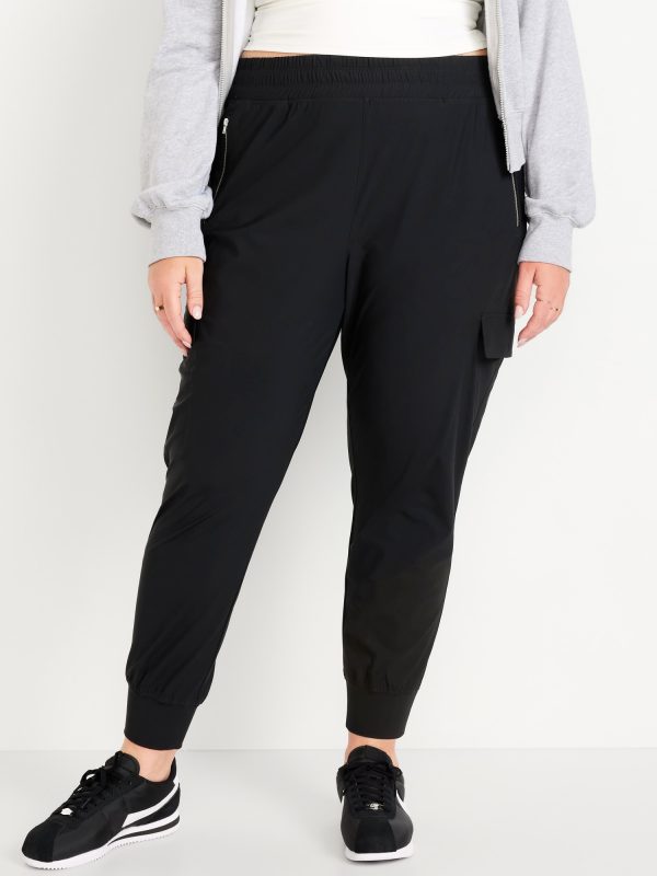 High-Waisted SleekTech Cargo Joggers: Featuring SleekTech. Polished and lightweight, with serious stretch.elastic waist, zippered hip pockets, flap-cargo pockets at thigh, go-dry wicks moisture, breathable, pull-on style, #569700