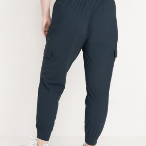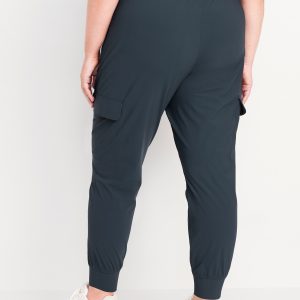 High-Waisted SleekTech Cargo Joggers: Featuring SleekTech. Polished and lightweight, with serious stretch.elastic waist, zippered hip pockets, flap-cargo pockets at thigh, go-dry wicks moisture, breathable, pull-on style, #569700