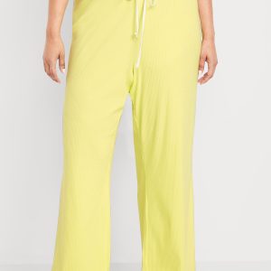 High-Waisted Slouchy Lounge Pants: elastic-drawstring waistband, slouchy barrel leg, pull-on style, floral print, #766757