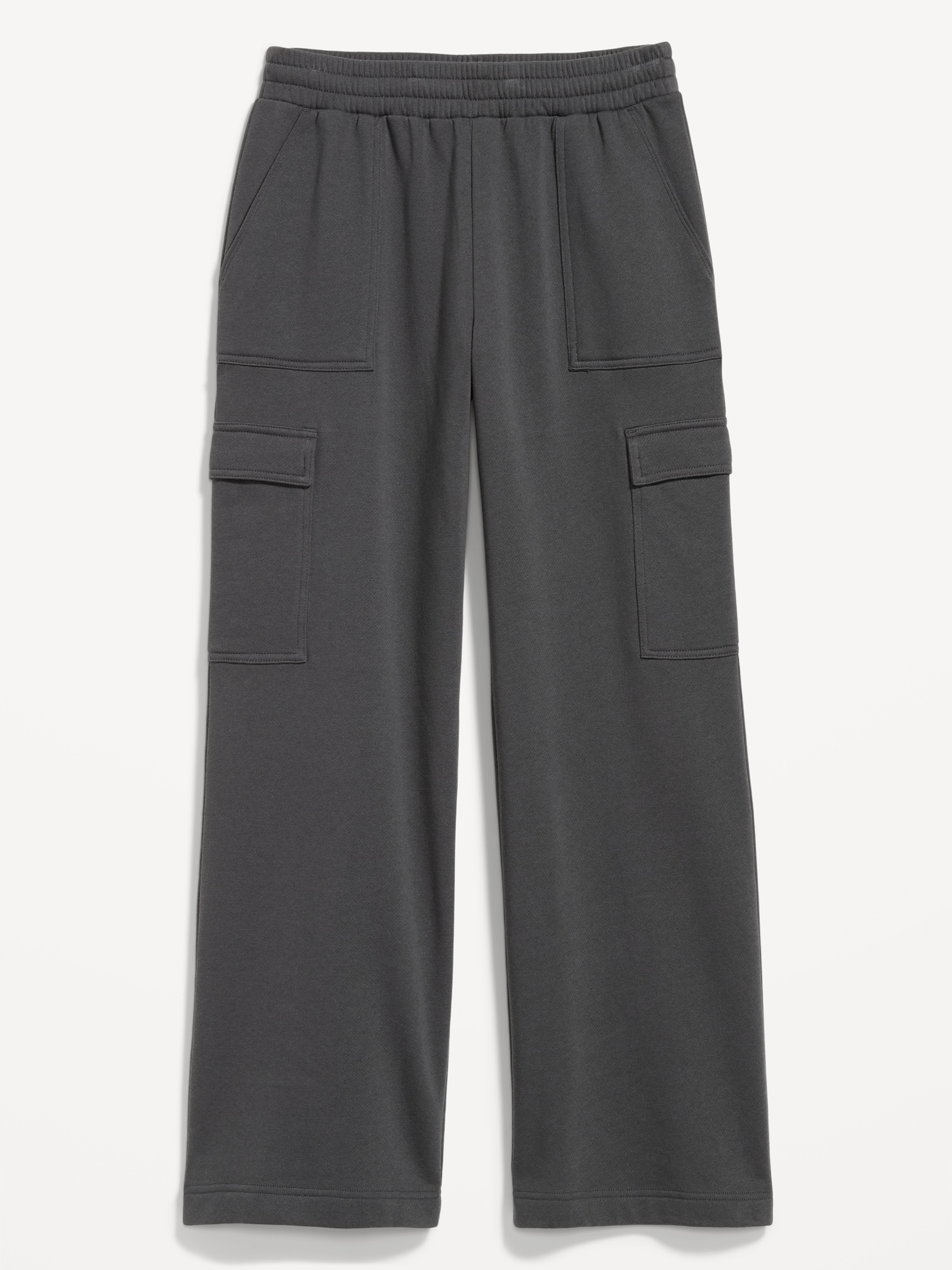 High-Waisted SoComfy Cargo Wide-Leg Sweatpants: The perfect-weight, never-taking-this-off fleece.high elastic waistband, front pockets, flap-cargo pockets at thigh, wide leg, pull-on style, #764226