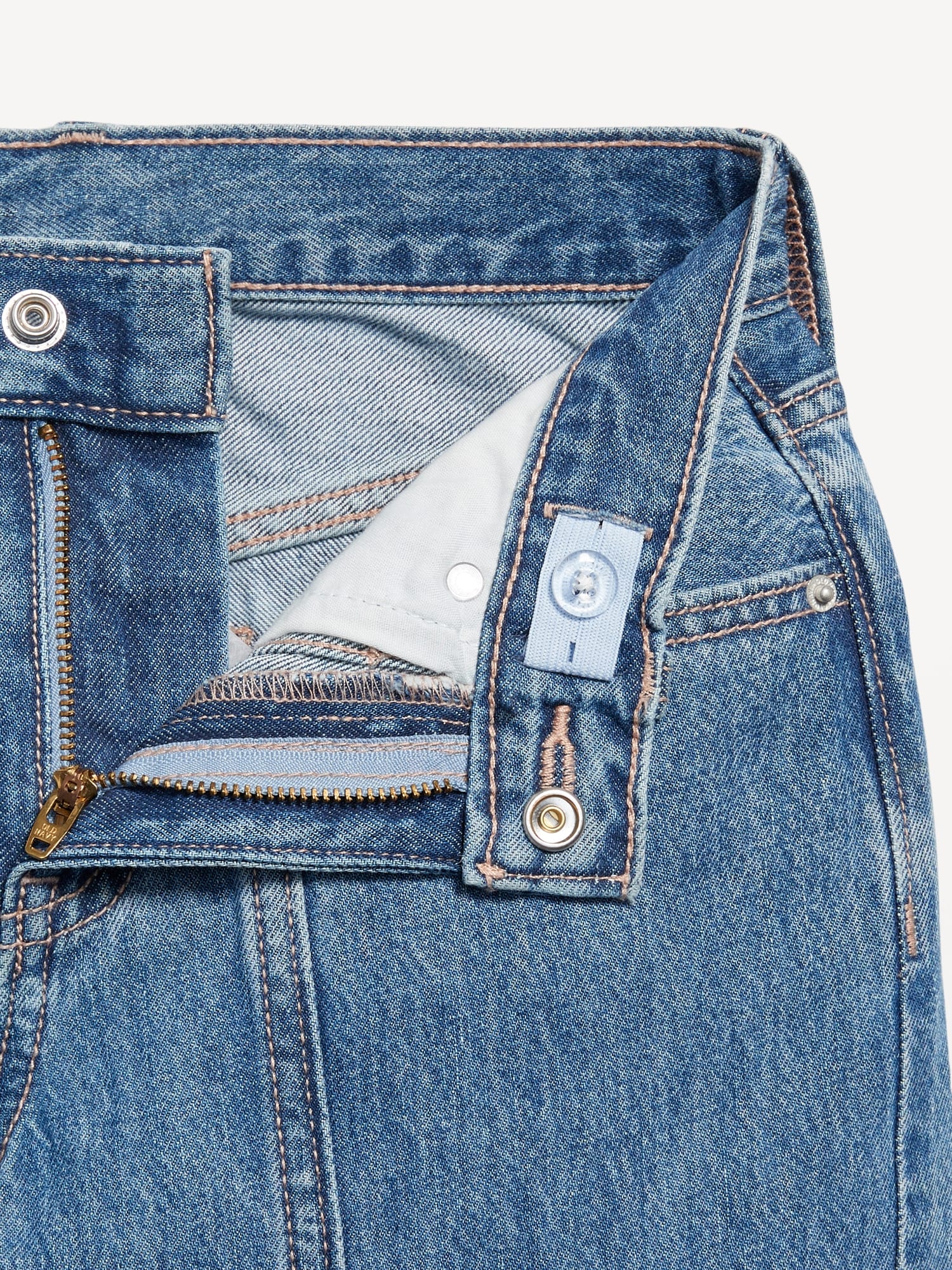 High-Waisted Super Baggy Wide-Leg Cargo Jeans for Girls: interior adjustable waistband, snap button closure (sizes 5-8), regular button closure (sizes 10-20), zip fly, scoop pockets and coin pocket, patch pockets at back, flap-cargo pockets, super wide leg opening, #583291