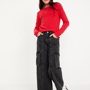 High-Waisted Super Baggy Wide-Leg Cargo Jeans for Girls