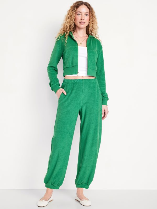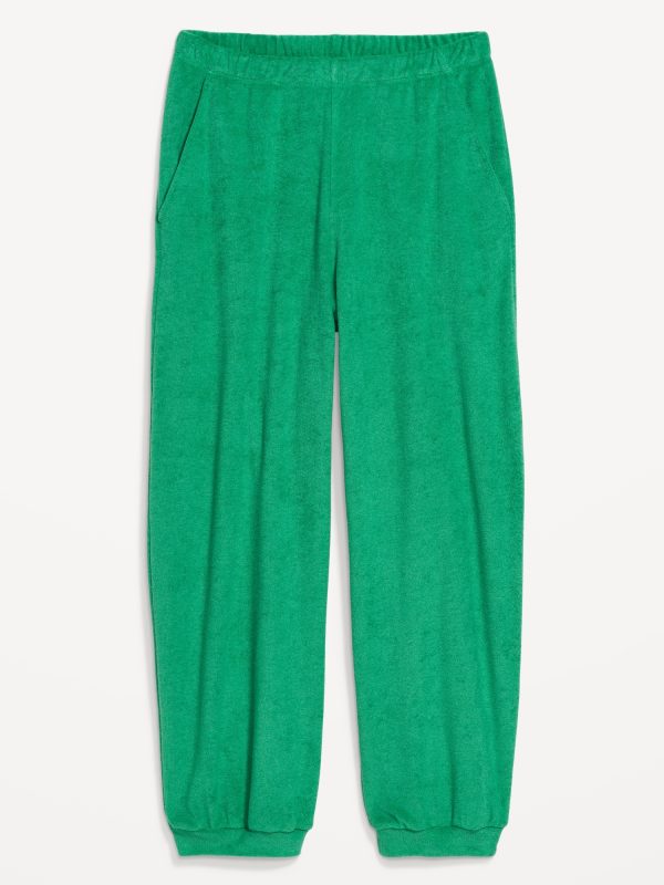 High-Waisted Towel Terry Barrel Ankle Pants