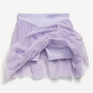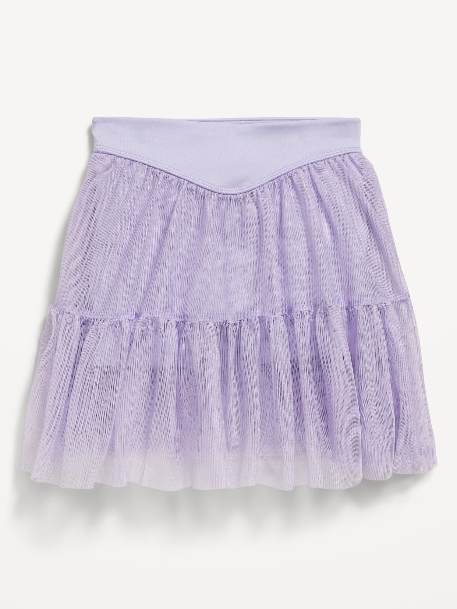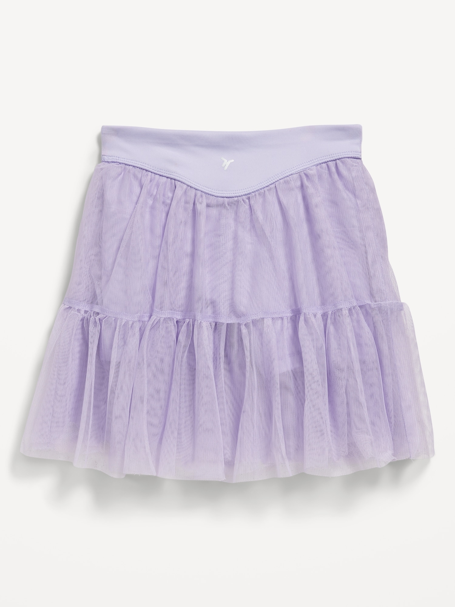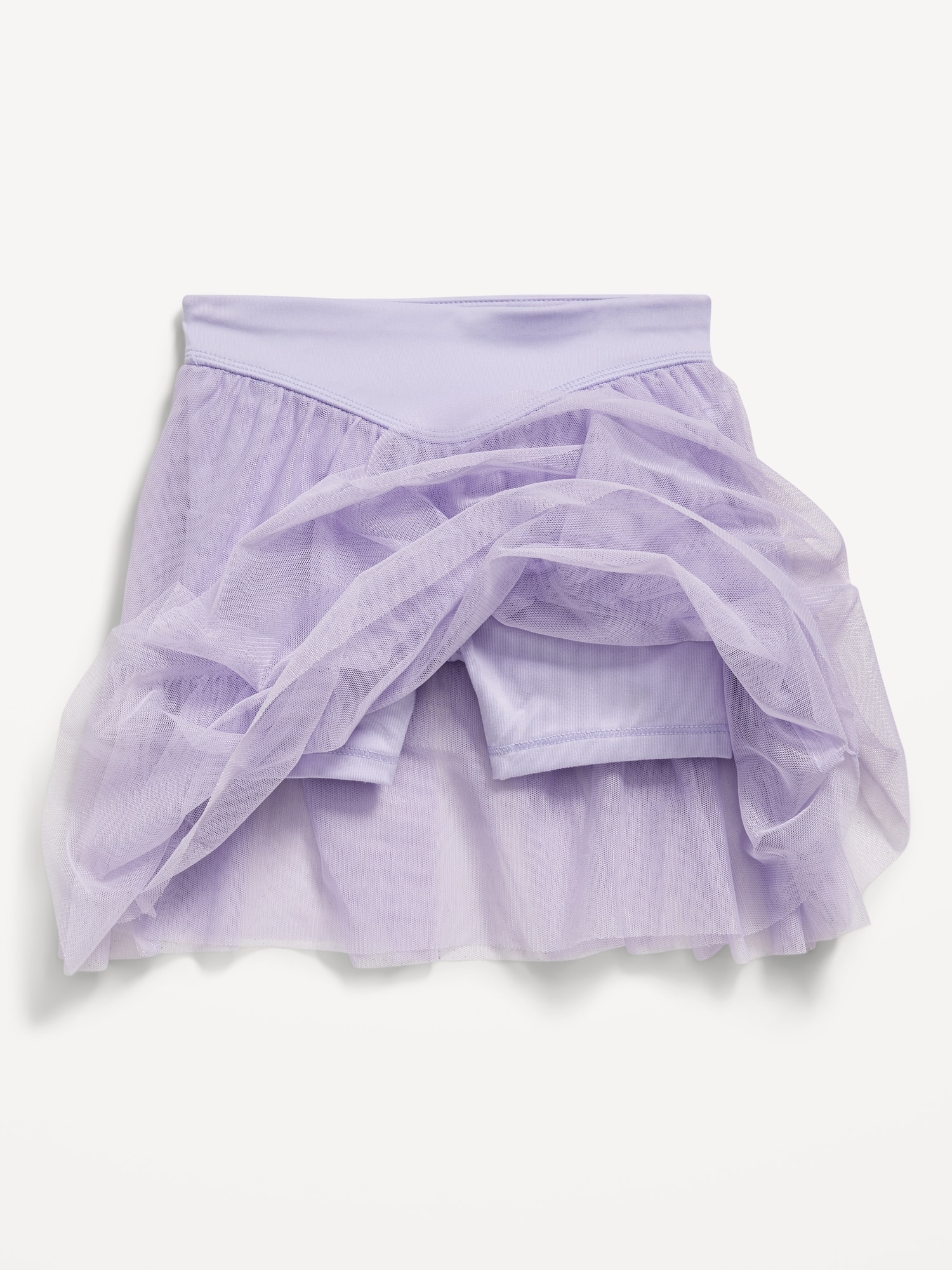 High-Waisted Tutu Performance Skort for Toddler Girls: built-in shorts, elasticized waistband, high rise, stash pocket on shorts, flared tutu skirt, lightweight tulle mesh layers, online exclusive, #766731