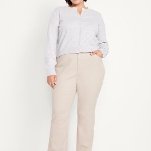 High-Waisted Uniform Boot-Cut Pants: zip fly, front scoop pockets, back right welt pocket, darted back waist, boot-cut leg, #771879