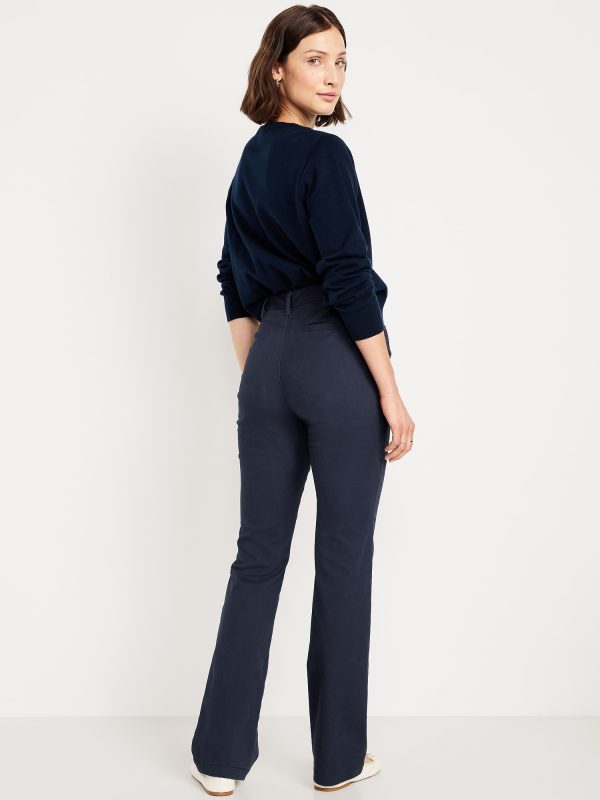 High-Waisted Uniform Boot-Cut Pants: zip fly, front scoop pockets, back right welt pocket, darted back waist, boot-cut leg, #771879