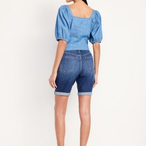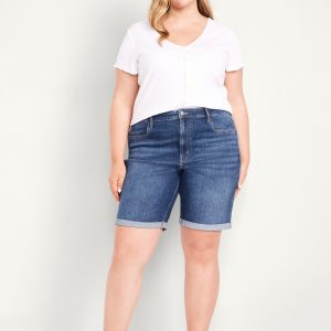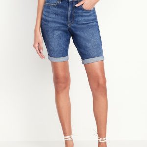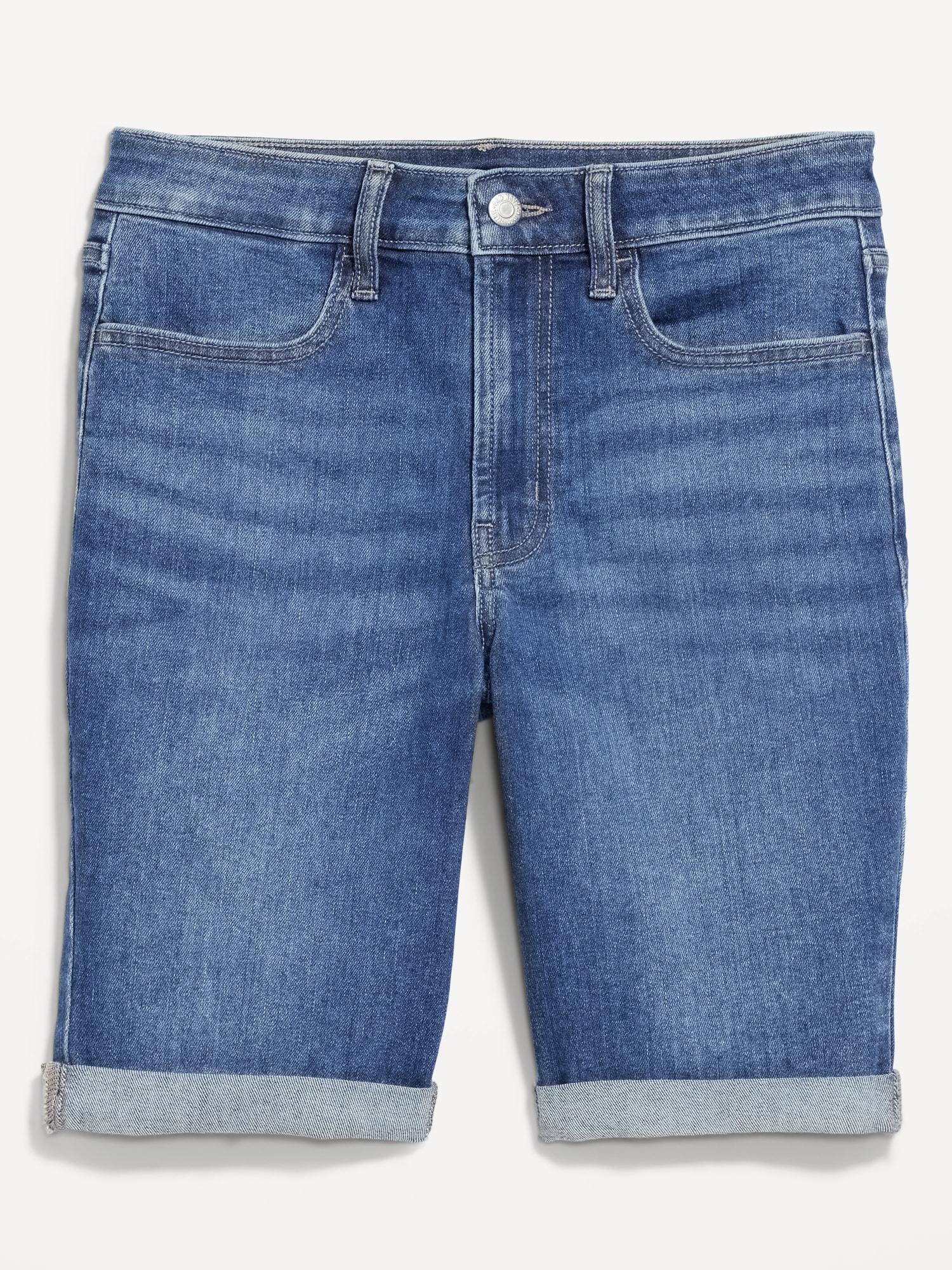 High-Waisted Wow Jean Shorts — 9-inch inseam: high waisted, zip fly, rolled cuffs, #695175
