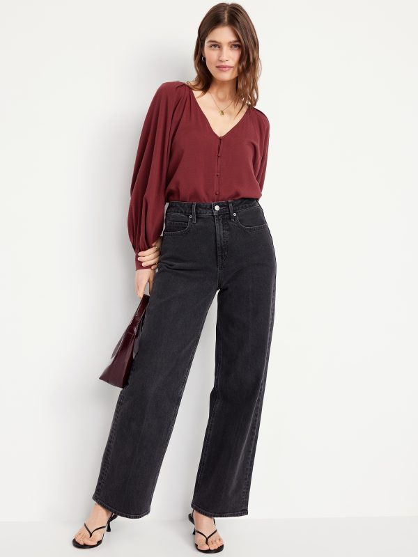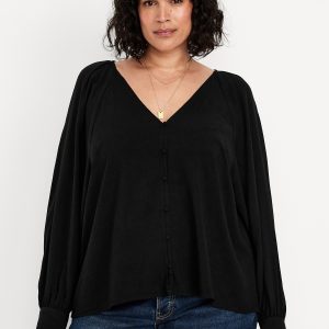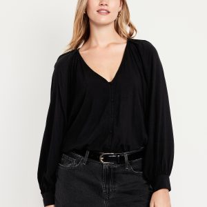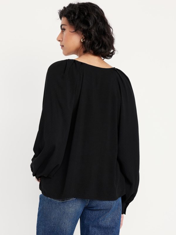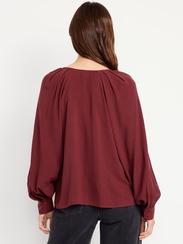 Jacquard Button-Down Top: v-neck, raglan sleeves with buttoned cuffs, full-button front, prints vary, #805742