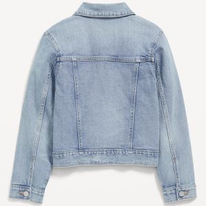 Jean Trucker Jacket for Girls: Notched collar., Long sleeves, with buttoned cuffs., Seamed yoke., Decorative button-flap pockets at chest., Full-length buttoned placket., Vertical welt pockets., Soft cotton denim, with comfortable stretch., We’ve updated the fabric content on select colors & patterns of this style. Select inventory may reflect a slightly different fabric content of 91% cotton, 7% recycled cotton, 2% spandex., #737779