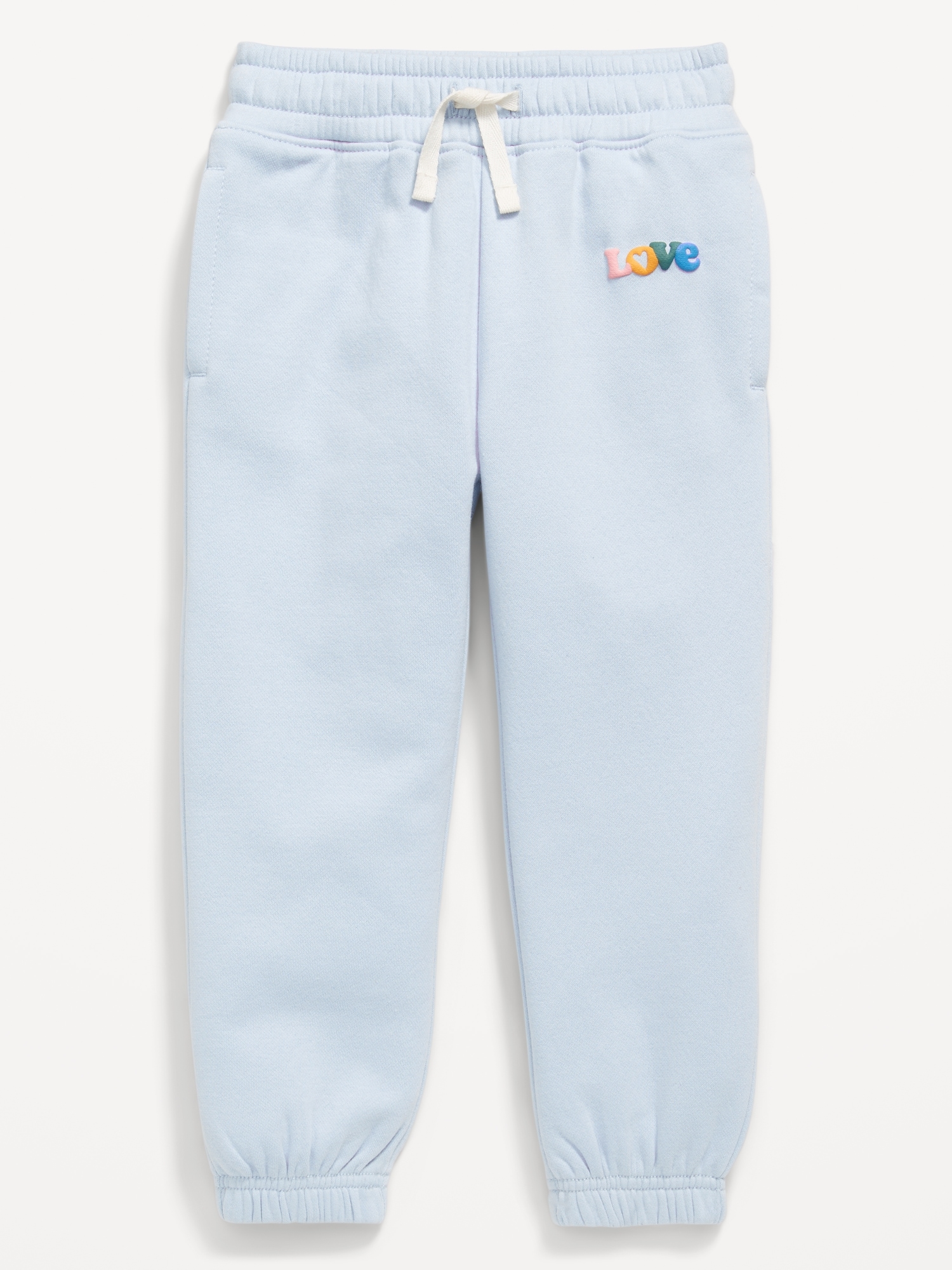 Jogger Sweatpants for Toddler Girls: elasticized waistband, adjustable drawstring, on-seam hip pockets, logo graphic at hip, elasticized cinched cuffs, all-over print, easy pull-on style, available exclusively online and at old navy outlet stores., #800945