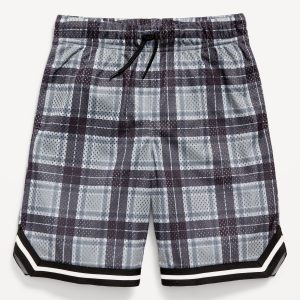 Knee Length Mesh Basketball Shorts for Boys: Made to keep up with all their shenanigans., Elasticized waistband, with adjustable drawstring., On-seam welt pockets., Retro striped tape trim at leg openings and vented sides., Breathable lightweight mesh lets him vent., Smooth, lightweight tricot lining., #875637
