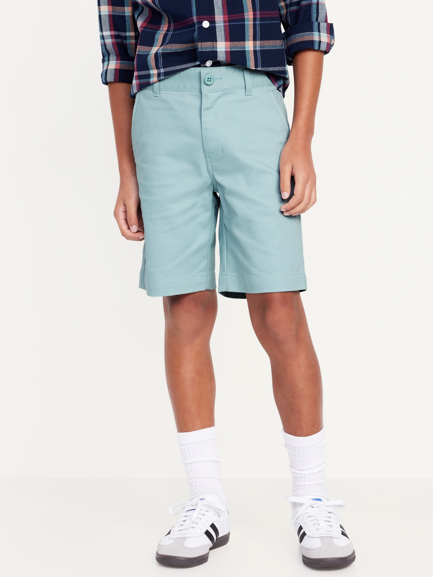 Knee Length Twill Shorts for Boys: Uniform Guarantee: Uniforms may be returned for a full refund with the original receipt for 365 days from the date of purchase.interior adjustable waistband, hook & bar closure in sizes 5-8, regular button closure in sizes 10-20, zip fly, flat front, diagonal on-seam pockets in front, single welt pocket at back, online exclusive, #860604