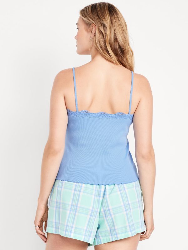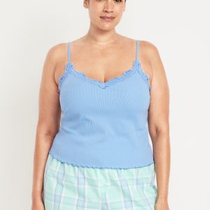 Lace-Trim Cami Tank Top: lace-trim v-neck, adjustable straps, #749270