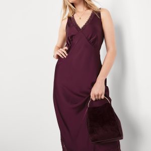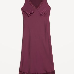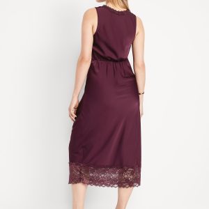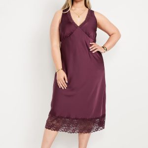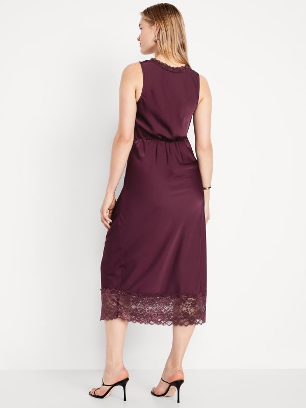 Lace-Trim Satin Midi Dress