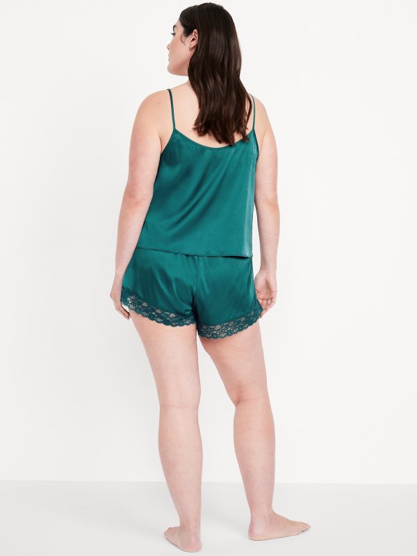 Lace-Trim Satin Pajama Short Set: set includes cami sleep top and matching shorts, lace-trim v-neck, spaghetti straps, elastic-waist shorts with lace hem, #808316