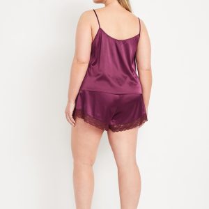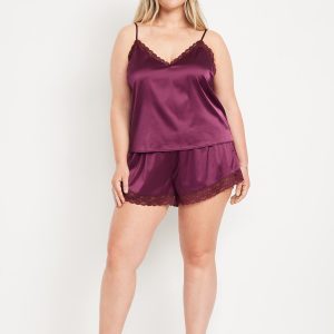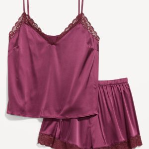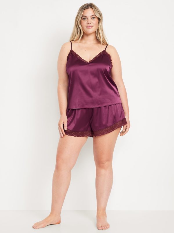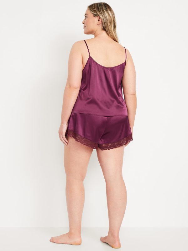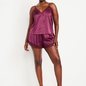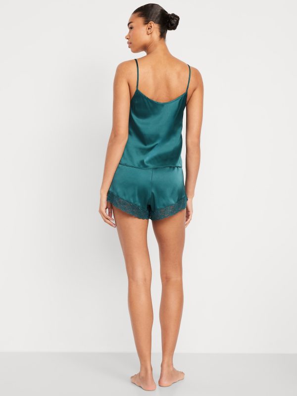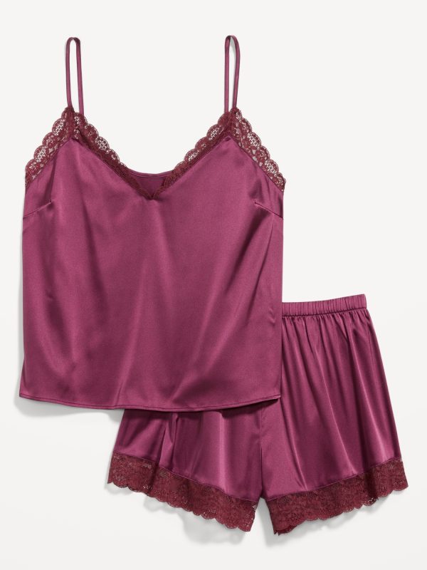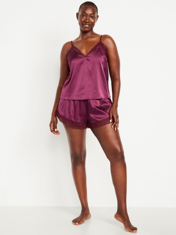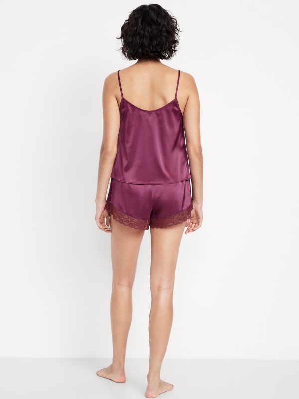 Lace-Trim Satin Pajama Short Set: set includes cami sleep top and matching shorts, lace-trim v-neck, spaghetti straps, elastic-waist shorts with lace hem, #808316