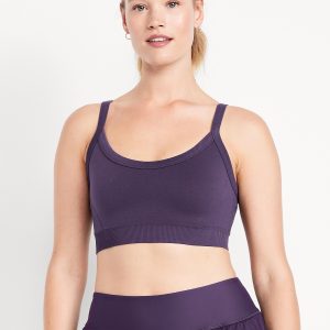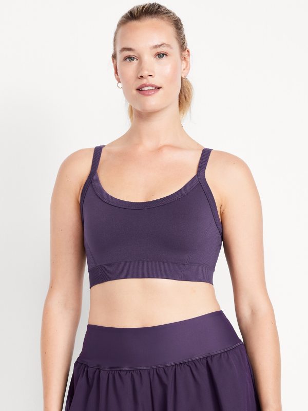 Light Support Fluid Seamless Ribbed Sports Bra: Featuring Fluid Seamless, for breathable, barely-there feels.scoop neck, adjustable straps, #845757