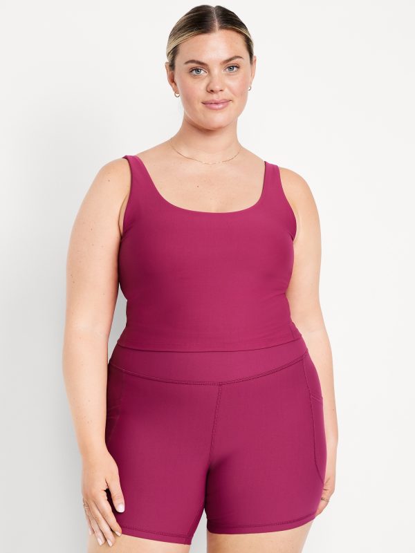 Light Support PowerSoft Longline Sports Bra: Featuring PowerSoft. Light compression meets a peachy-smooth, sweat-wicking fabric.scoop neck, wide straps, removable cups, front mesh lining, go-dry wicks moisture, #723227