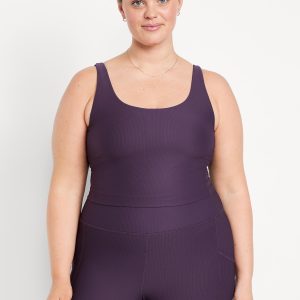 Light Support PowerSoft Rib Longline Sports Bra: Featuring PowerSoft. Light compression meets a peachy-smooth, sweat-wicking fabric.scoop neck, wide straps, removable pads, go-dry wicks moisture, #835594
