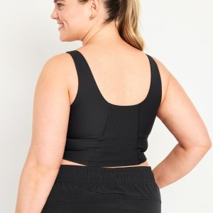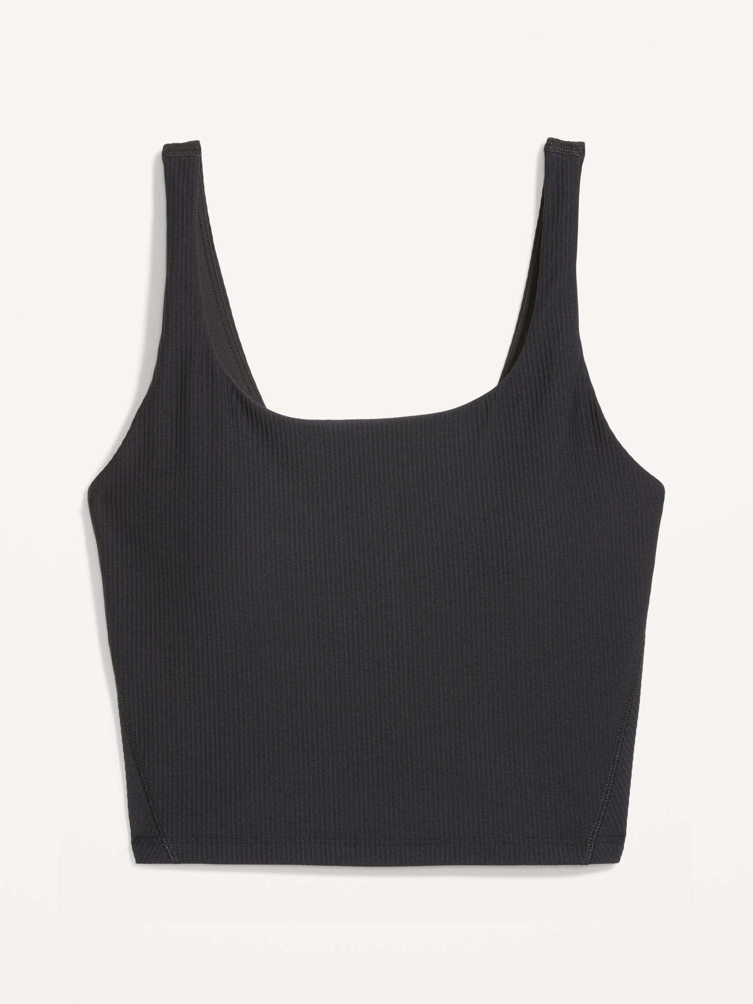 Light Support PowerSoft Rib Longline Sports Bra: Featuring PowerSoft. Light compression meets a peachy-smooth, sweat-wicking fabric.scoop neck, wide straps, removable pads, go-dry wicks moisture, #835594