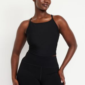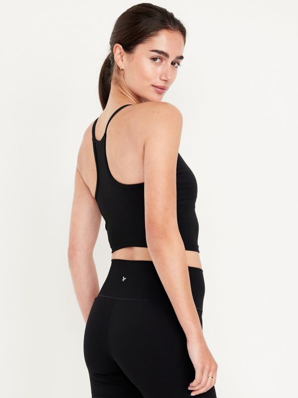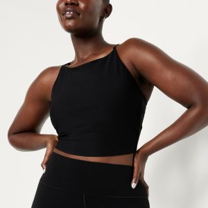 Light Support StudioSmooth Longline Sports Bra: Featuring StudioSmooth. Buttery soft and breathable, with a barely-there feel.high neck, spaghetti straps, removable pads, racerback, go-dry wicks moisture, #694514