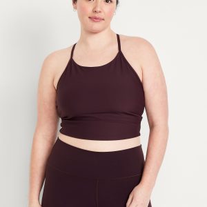 Light Support StudioSmooth Longline Sports Bra: Featuring StudioSmooth. Buttery soft and breathable, with a barely-there feel.high neck, spaghetti straps, removable pads, racerback, go-dry wicks moisture, #694514