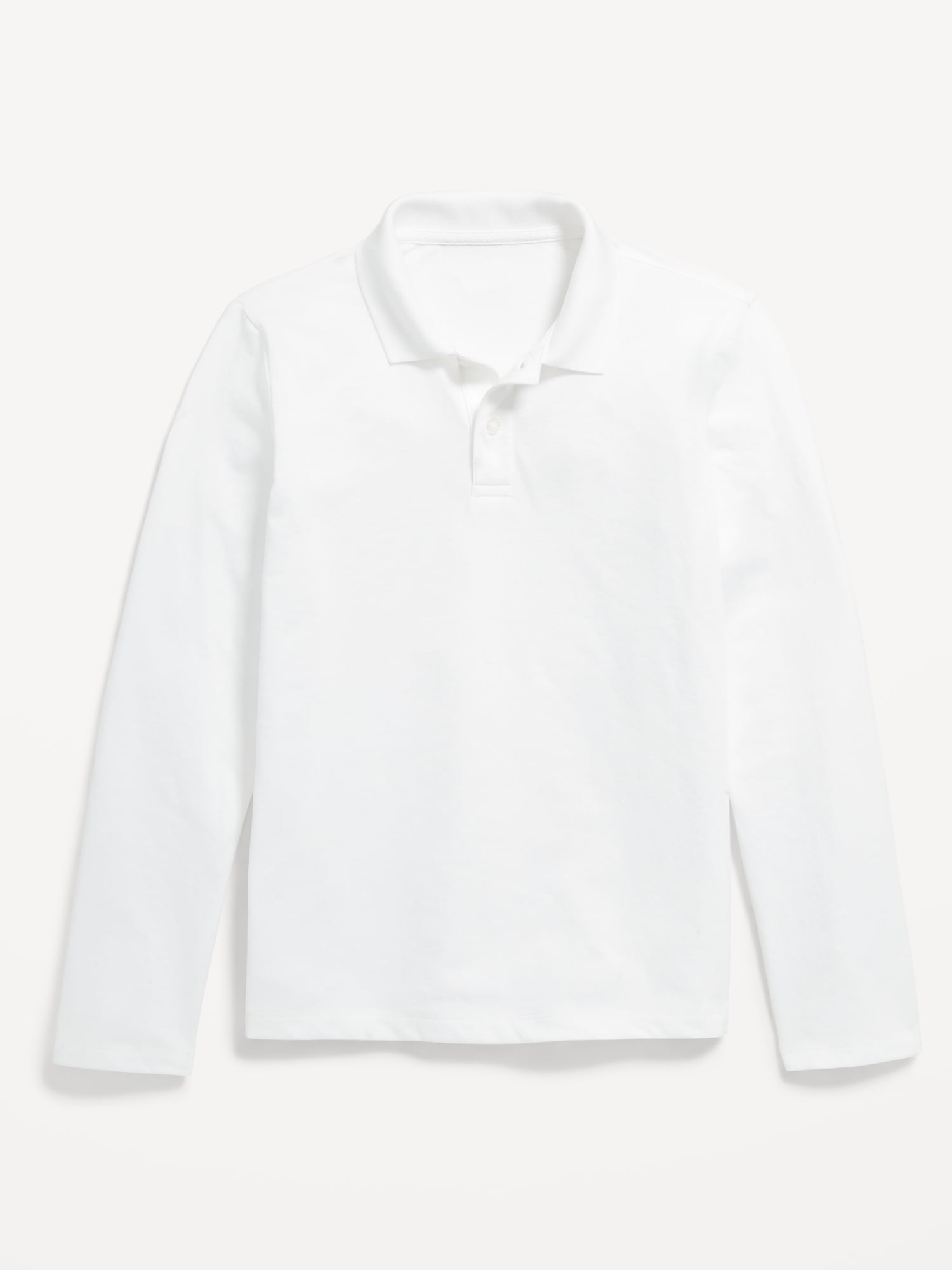 Lightweight Oxford School Uniform Shirt for Boys: pointed collar, long sleeves, buttoned cuffs, six-button placket, patch pocket at chest, #761671