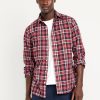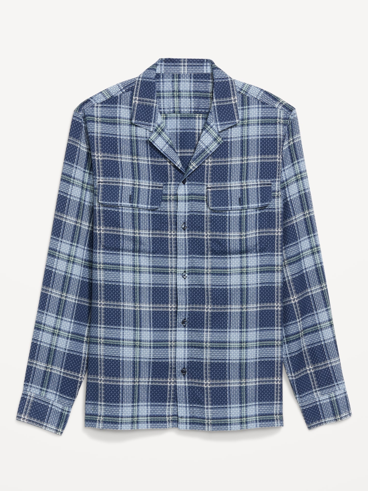 Lightweight Plaid Pocket Shirt: notched collar, long sleeves, button-flap chest pockets, full-button front, plaid print, #762451