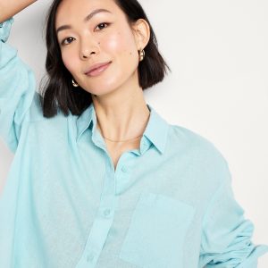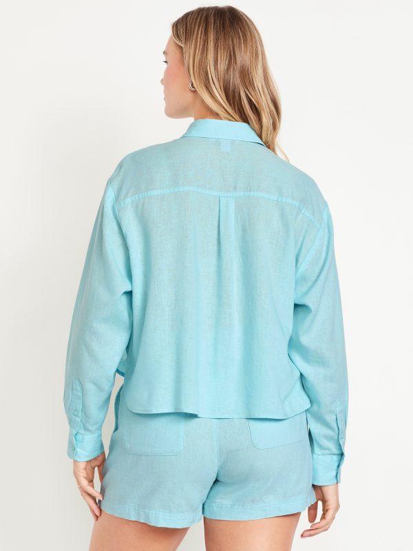 Linen-Blend Button-Down Crop Shirt