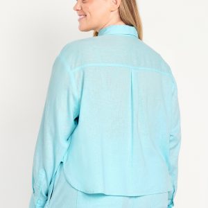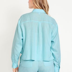 Linen-Blend Button-Down Crop Shirt
