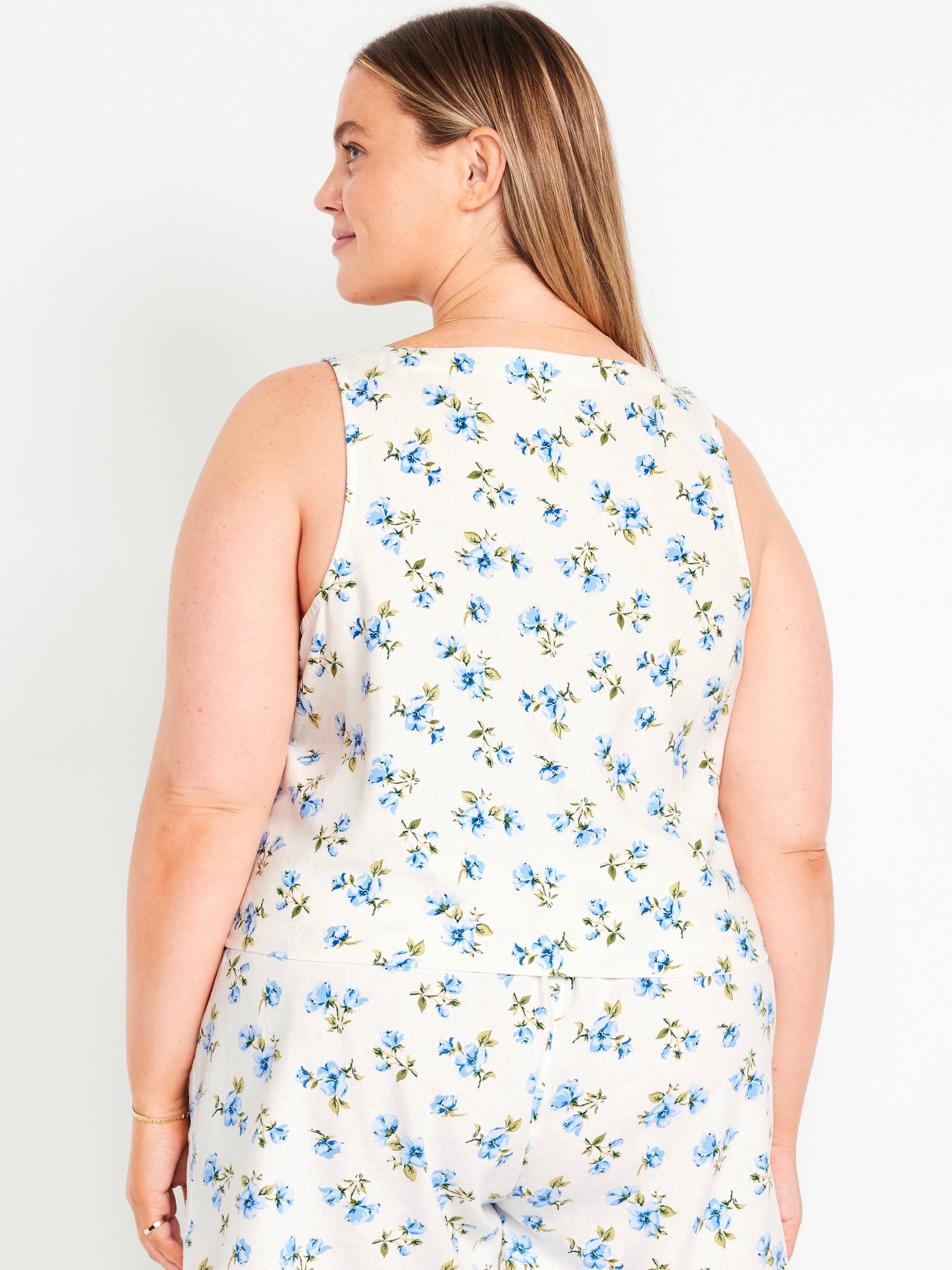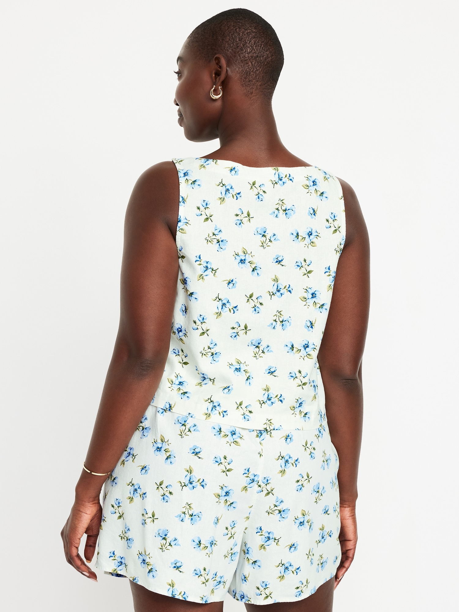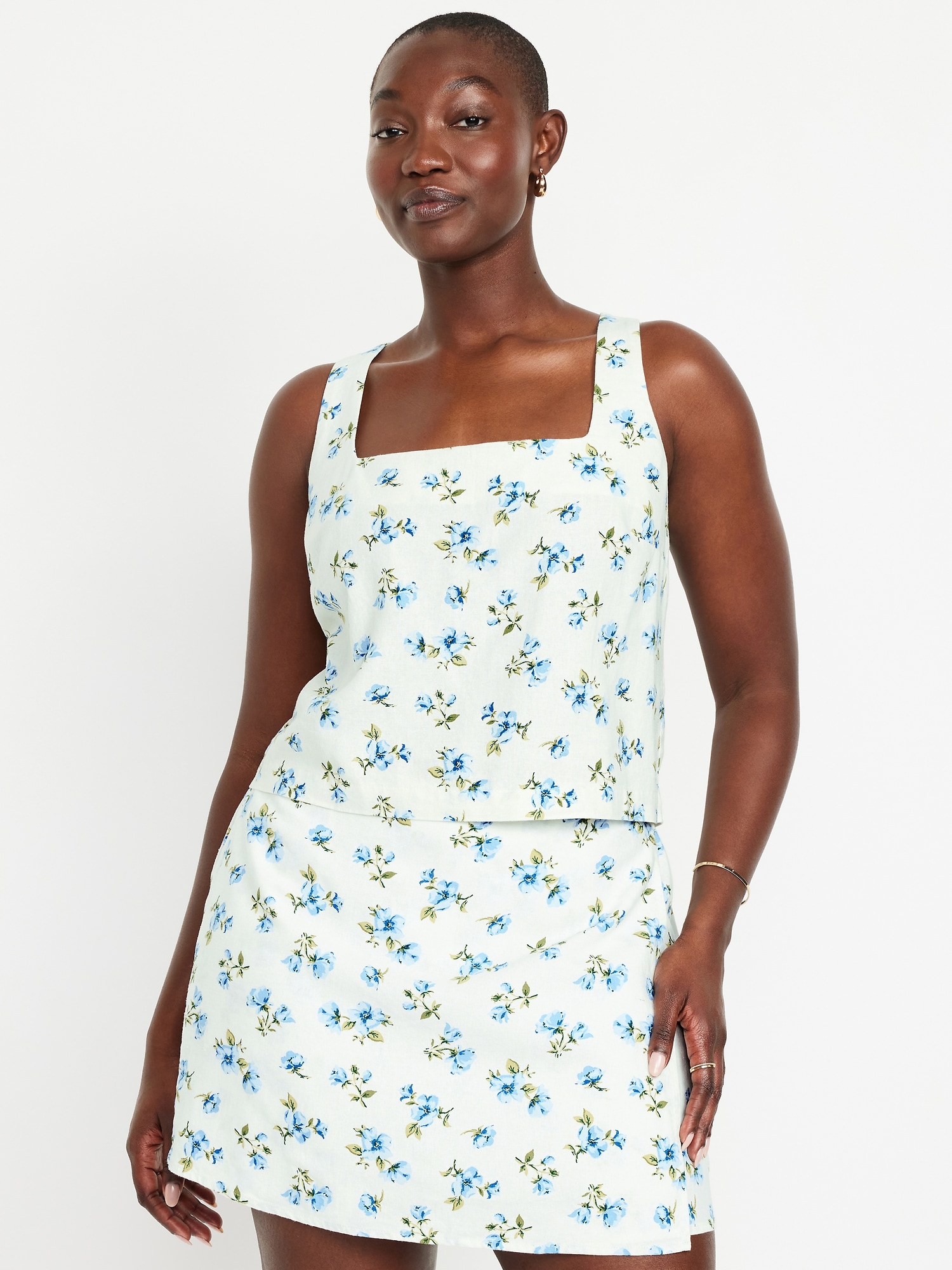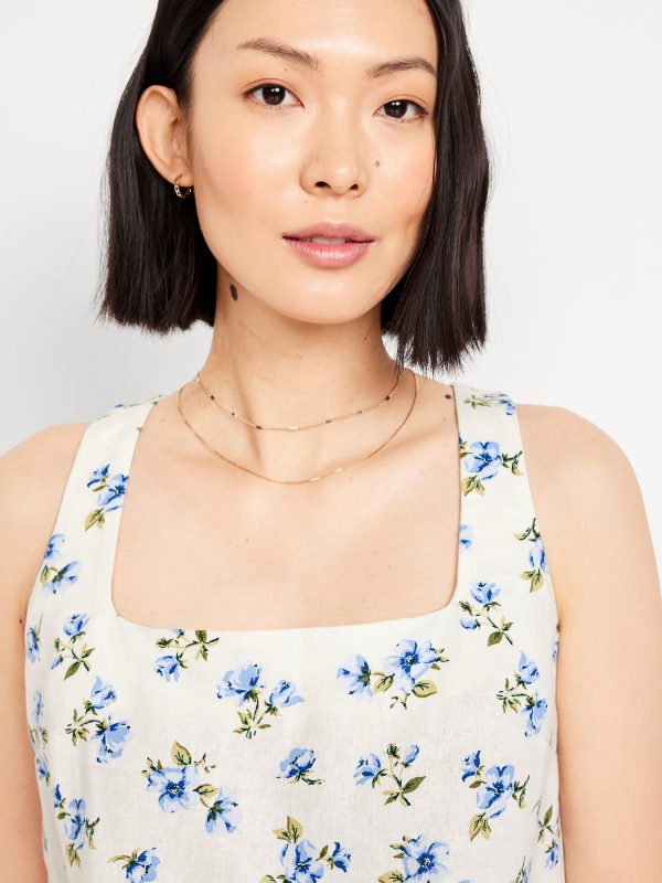 Linen-Blend Crop Top: square neck, sleeveless, darted bust, #756733
