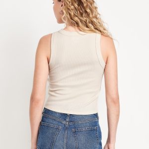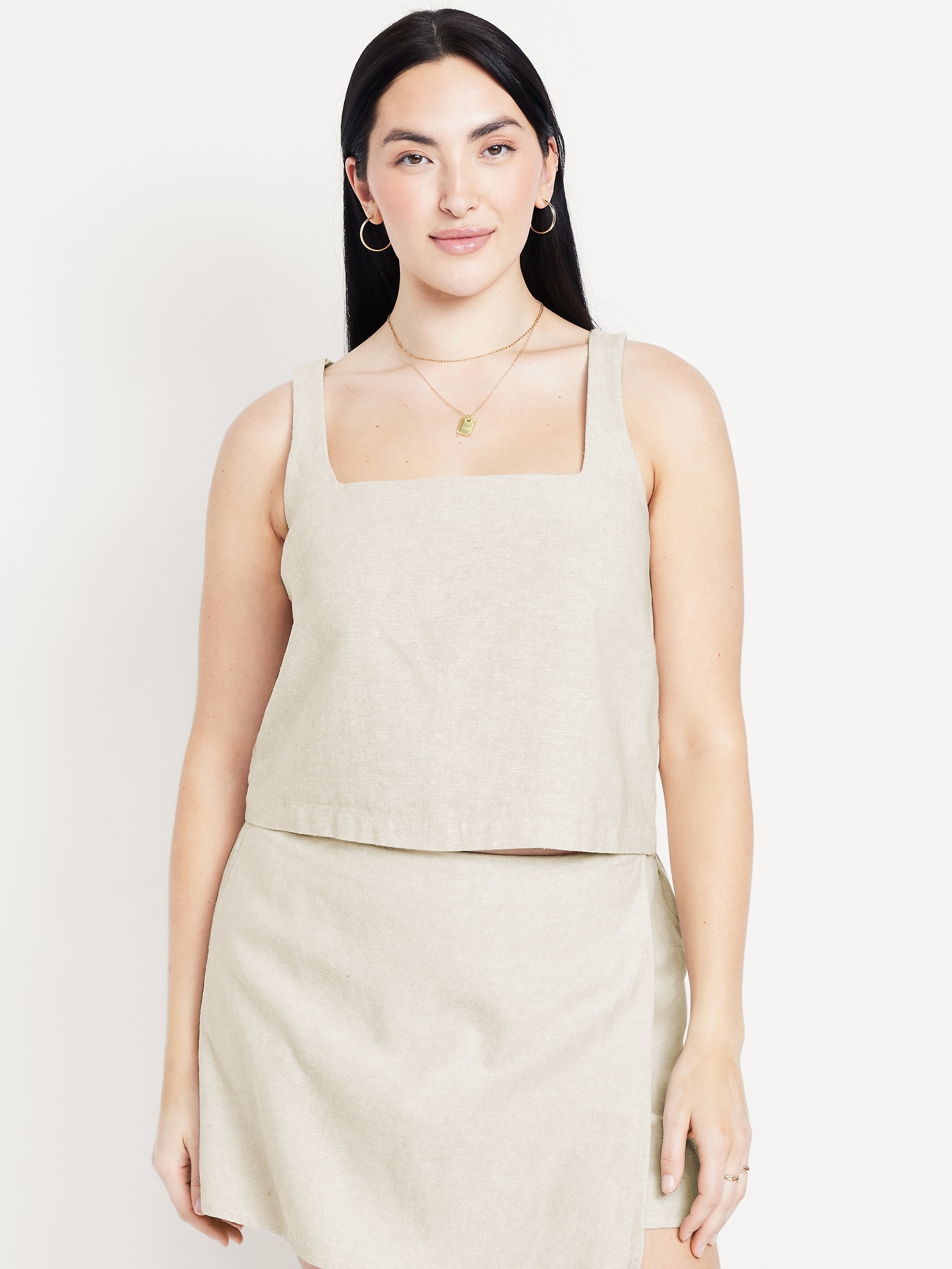 Linen-Blend Crop Top: square neck, sleeveless, darted bust, #756733