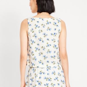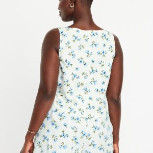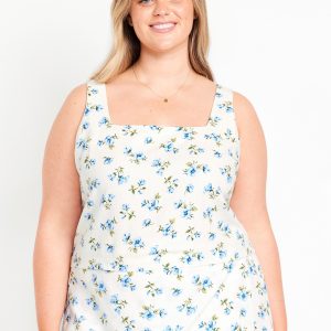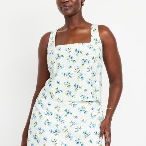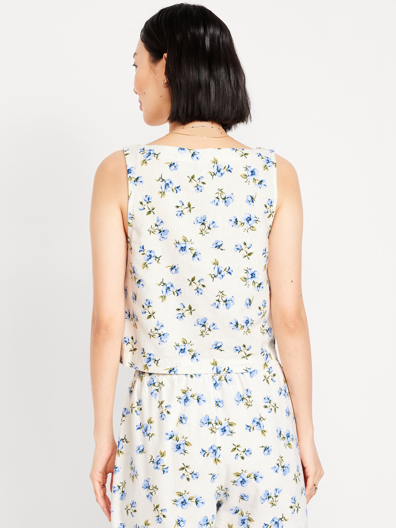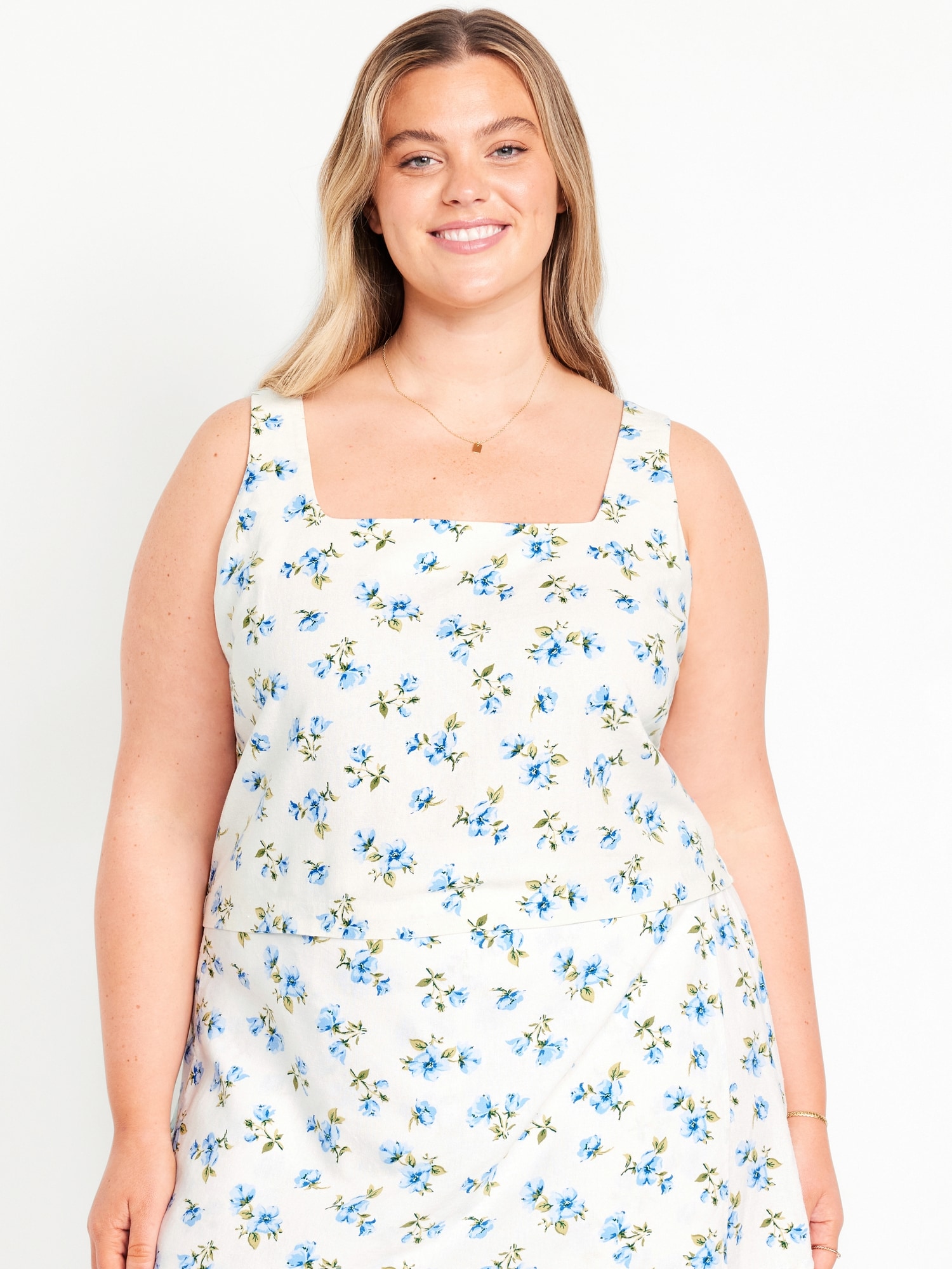 Linen-Blend Crop Top: square neck, sleeveless, darted bust, #756733
