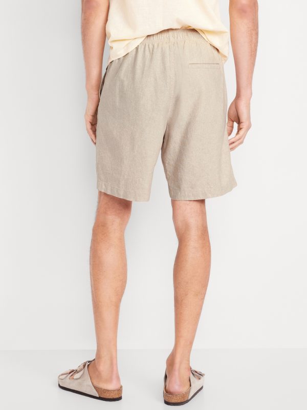 Linen-Blend Jogger Shorts — 7-inch inseam: elastic-drawstring waistband, diagonal hip pockets, back right welt pocket, #695576