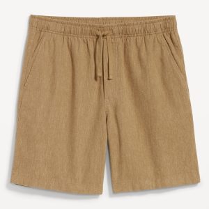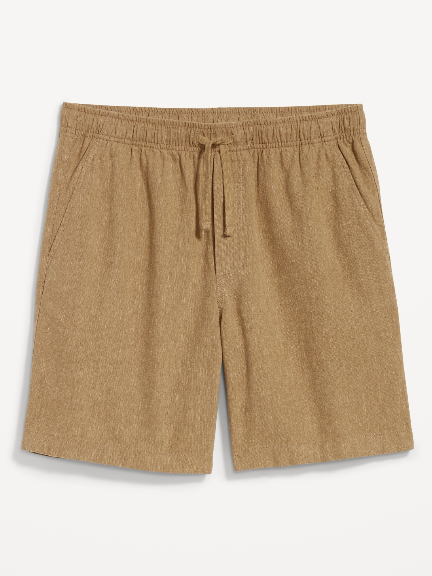 Linen-Blend Jogger Shorts — 7-inch inseam: elastic-drawstring waistband, diagonal hip pockets, back right welt pocket, #695576