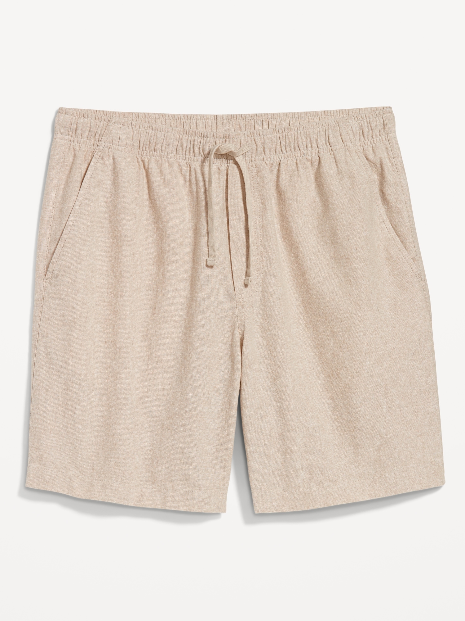 Linen-Blend Jogger Shorts — 7-inch inseam: elastic-drawstring waistband, diagonal hip pockets, back right welt pocket, #695576