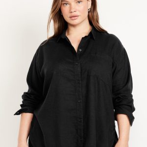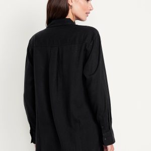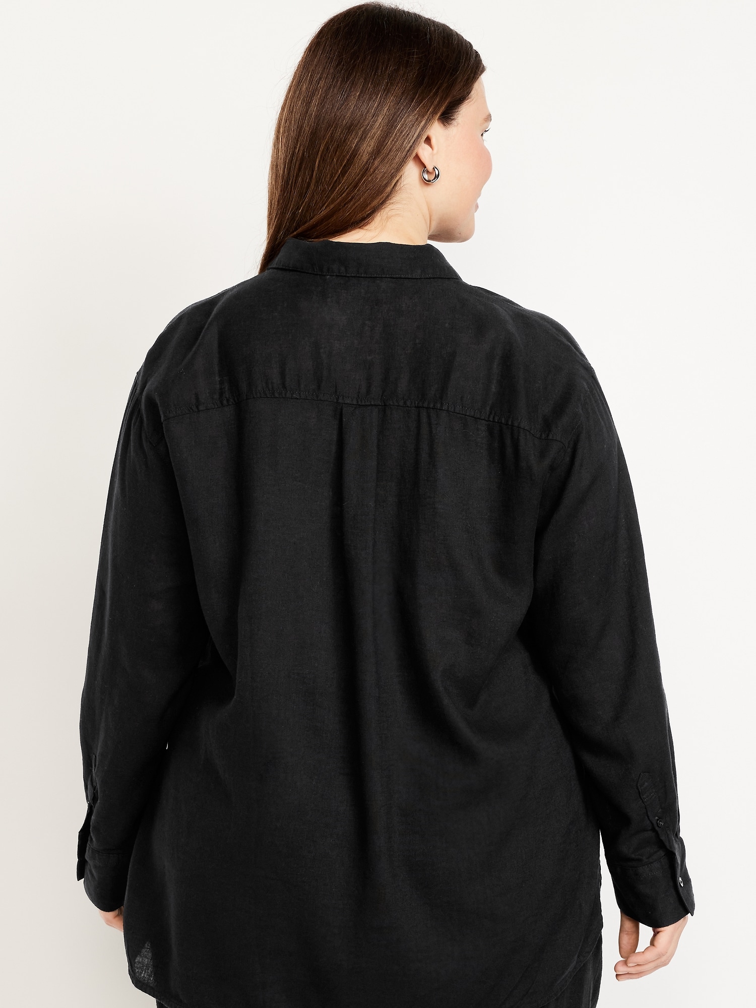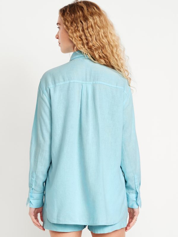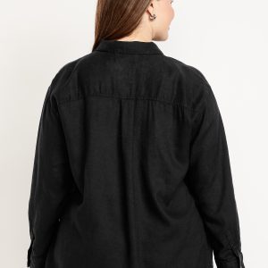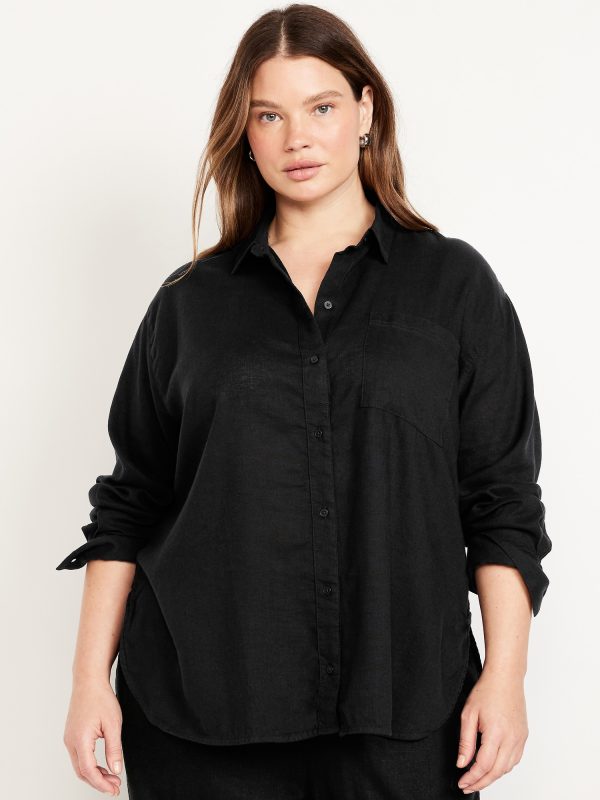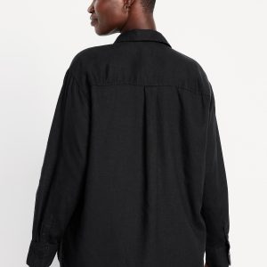 Linen-Blend Loose Button-Down Shirt
