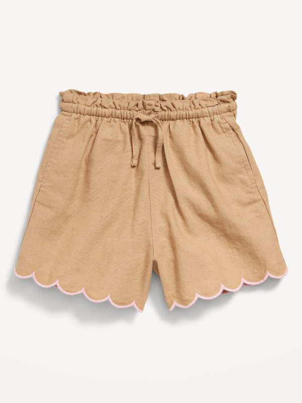Linen-Blend Scallop-Trim Shorts for Toddler Girls