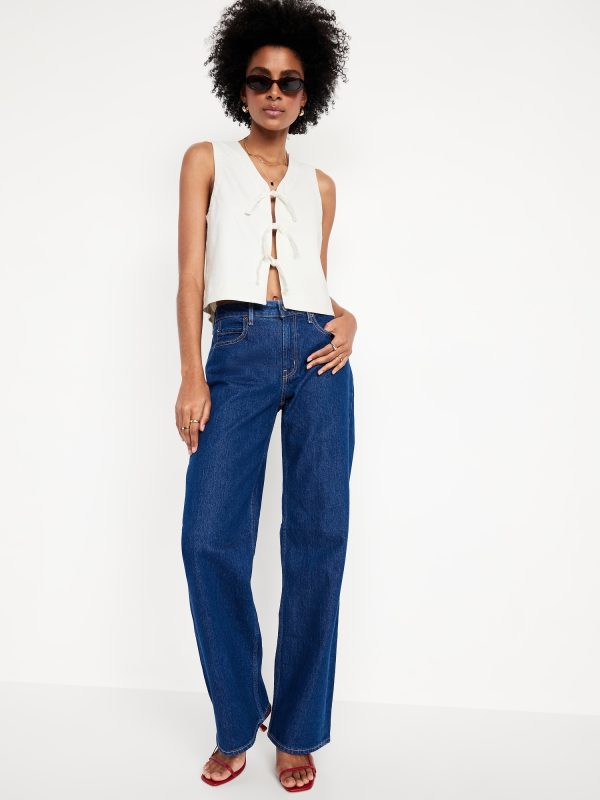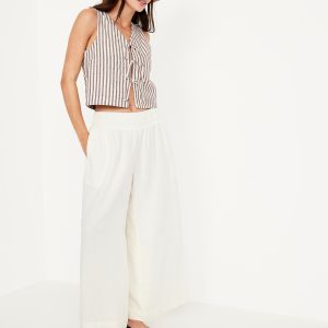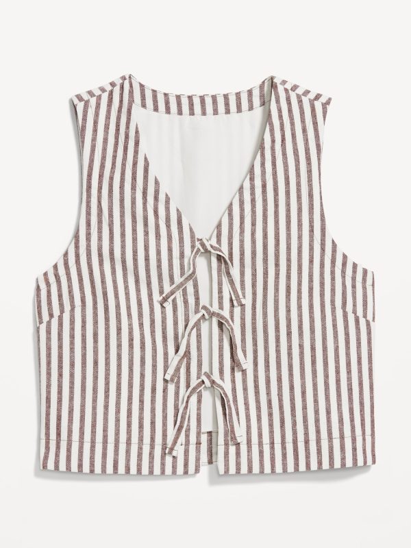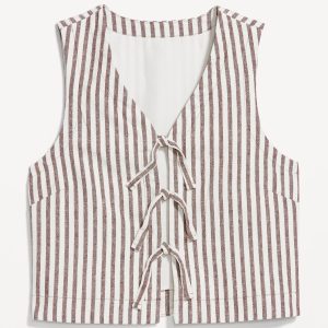Linen-Blend Tie-Front Vest: v-neck, sleeveless, tie-front accent, #764212