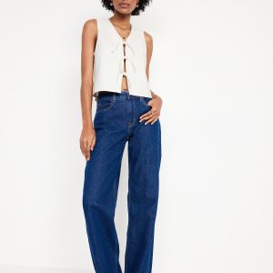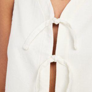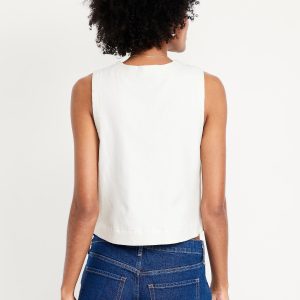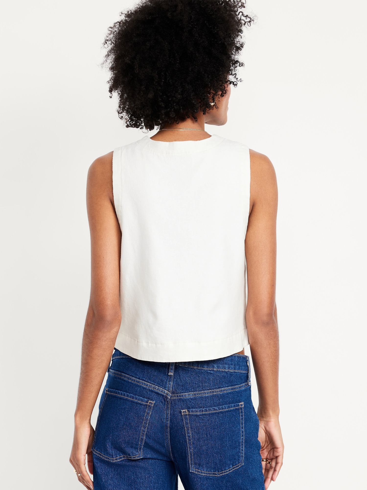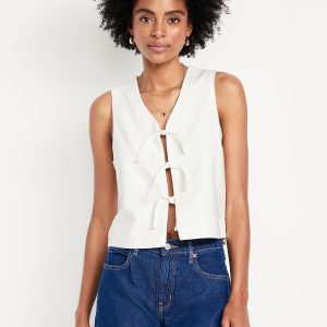 Linen-Blend Tie-Front Vest: v-neck, sleeveless, tie-front accent, #764212
