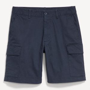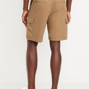 Lived-In Cargo Shorts — 9-inch inseam: button front, belt loops, zip fly, diagonal front pockets, back welt pockets, flap-cargo pockets at thigh, #695513