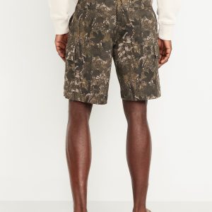 Lived-In Cargo Shorts — 9-inch inseam: button front, belt loops, zip fly, diagonal front pockets, back welt pockets, flap-cargo pockets at thigh, #695513