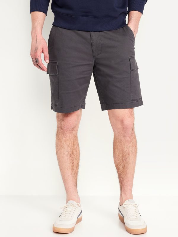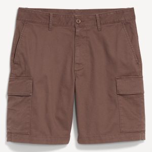 Lived-In Cargo Shorts — 9-inch inseam: button front, belt loops, zip fly, diagonal front pockets, back welt pockets, flap-cargo pockets at thigh, #695513